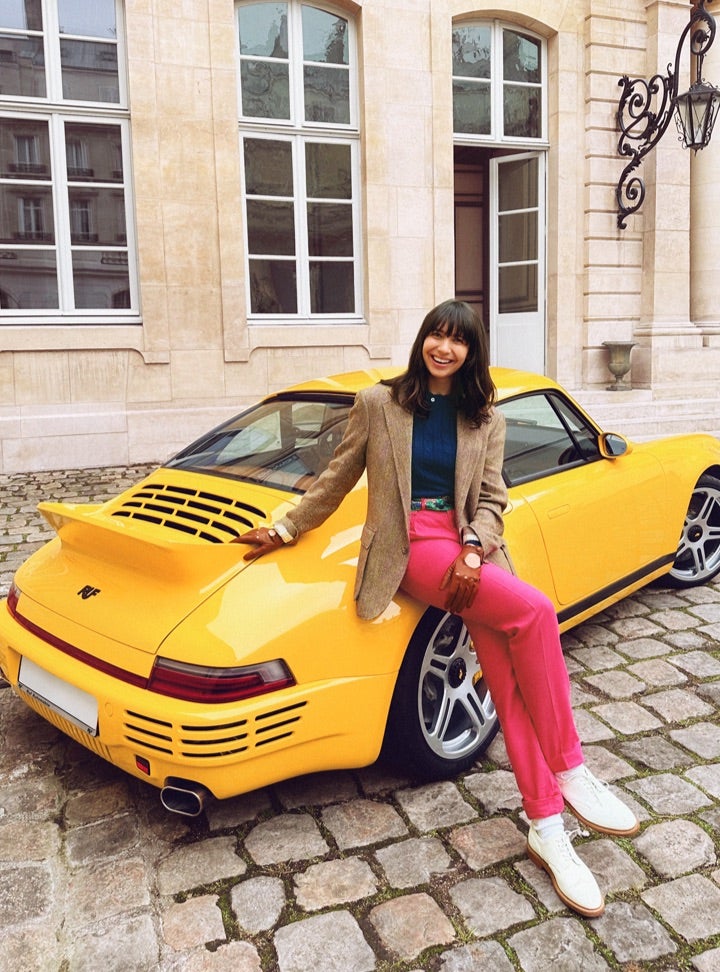 Aloisa Ruf (far right), who works for the family business as a guide to the color choosing process, with a CTR Anniversary. A tribute to the legendary Yellowbird, the car was featured in a recent Polo shoot (far left) that took place in Paris to capture the colorful spirit of our spring collection