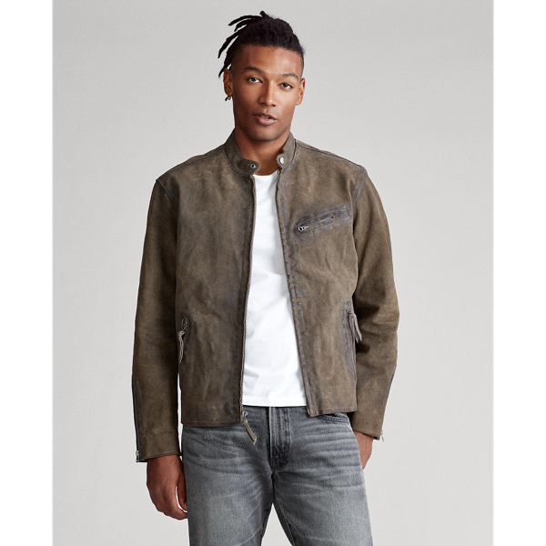 Popularised by European motorcyclists in the 1960s for its slim shape and tapered sleeves, the café racer is a sleek alternative to the traditional biker jacket. Our version delivers signature luxe style with velvety soft suede.